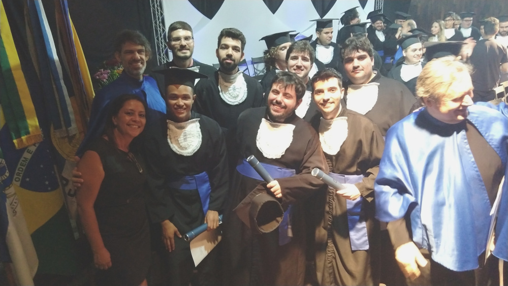 Homenageados e formandos (da esquerda para a direita): Cláudia Helena Prata, Daniel Ratton Figueiredo, Heitor Rodrigues Guimarães, Rodolfo Machado Brandão Costa, Lucas de Carvalho Gomes, Vinícius Silva Campos, Marcos Aurélio Constant de Souza Filho, Carlos Eduardo Menezes dos Anjos, Thiago de Lima Vasconcelos.
