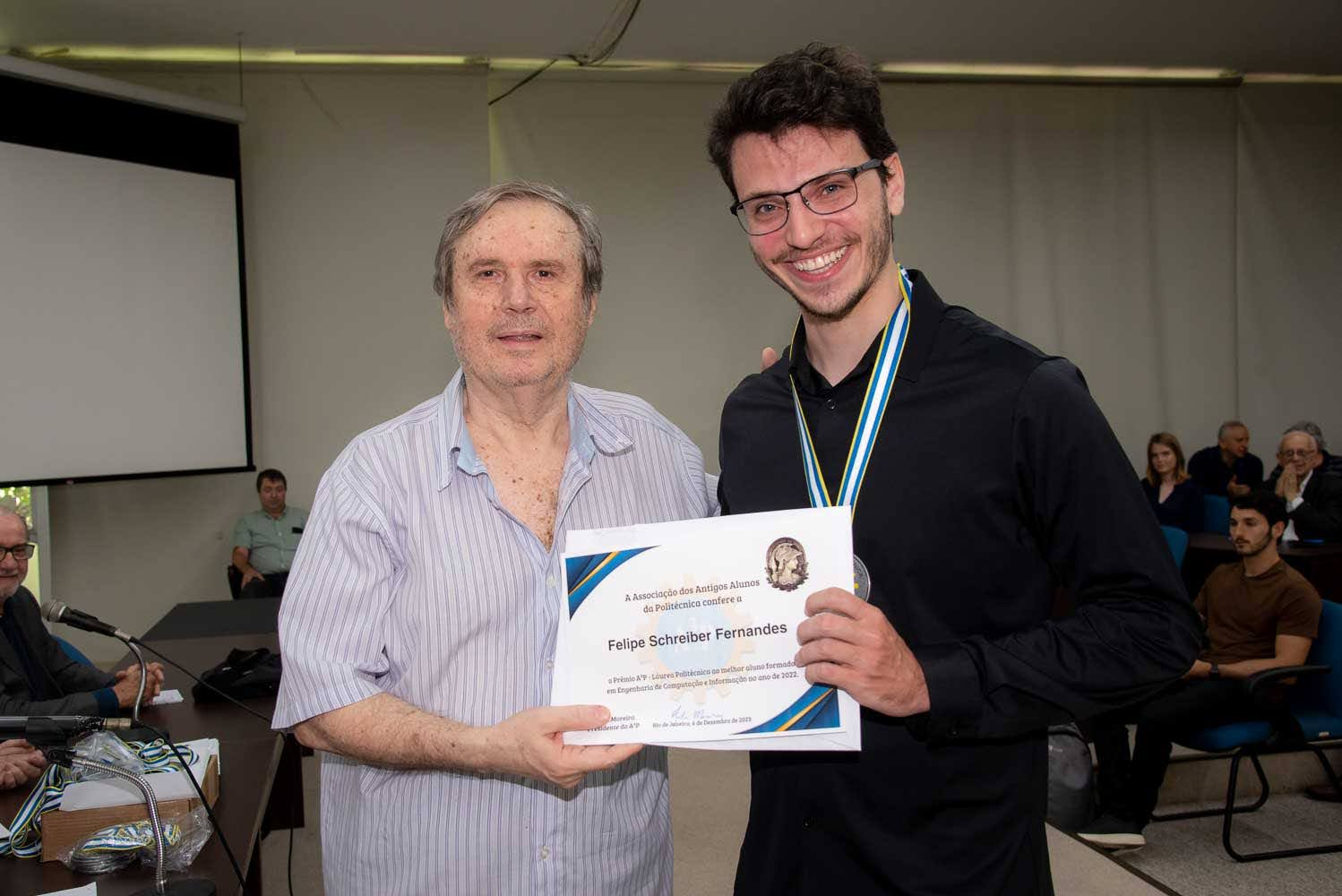 Felipe Schreiber Fernandes foi agraciado com o Prêmio A3P (da Associação dos Antigos Alunos da Politécnica) por apresentar o melhor desempenho no curso Engenharia de Computação e Informação (ECI) no ano de 2022.