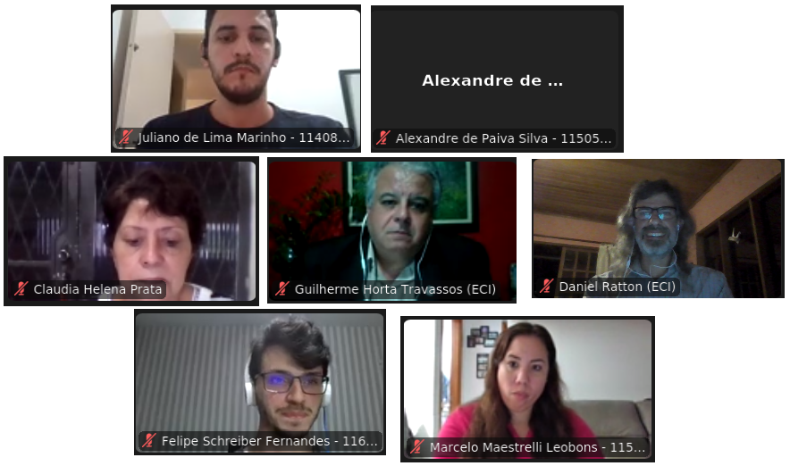 Os quatro formandos do curso de Engenharia de Computação e Informação (ECI) colaram grau na cerimônia remota do dia 28/6 (terça) e homenagearam o Prof. Daniel Ratton Figueiredo, escolhido como Paraninfo da turma, o Prof. Guilherme Horta Travassos, e a funcionária Cláudia Helena Prata, atual secretária do curso. O formando Felipe Schreiber Fernandes, orador da turma de ECI e agora aluno de mestrado do PESC, fez o juramento pelos formandos dos cursos (por ter o maior Coeficiente de Rendimento (CR) dentre os formandos). Assista a gravação da cerimônia de colação clicando aqui, inclui os discursos dos oradores das turmas, paraninfos, e homenageados.