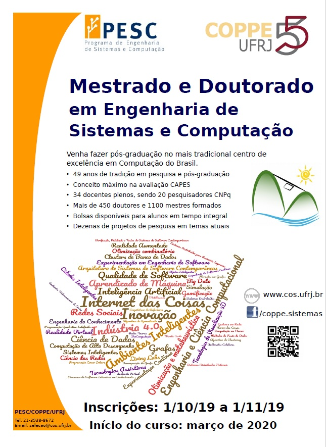 Encontram-se abertas as inscrições ao Processo Seletivo para Ingresso no Mestrado ou no Doutorado do PESC em 2020!